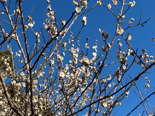木によってまちまちな状態でしたが、青空をバックに可憐な梅が実に美しかったです。